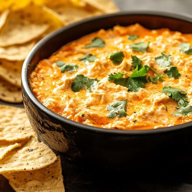 Shredded chicken folded into rich, spicy buffalo cream cheese dip. Served with tortilla chips for peak snack energy.