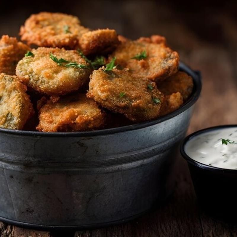 Tangy pickle chips fried in our seasoned cornmeal breading. Served with City Ranch for dipping.