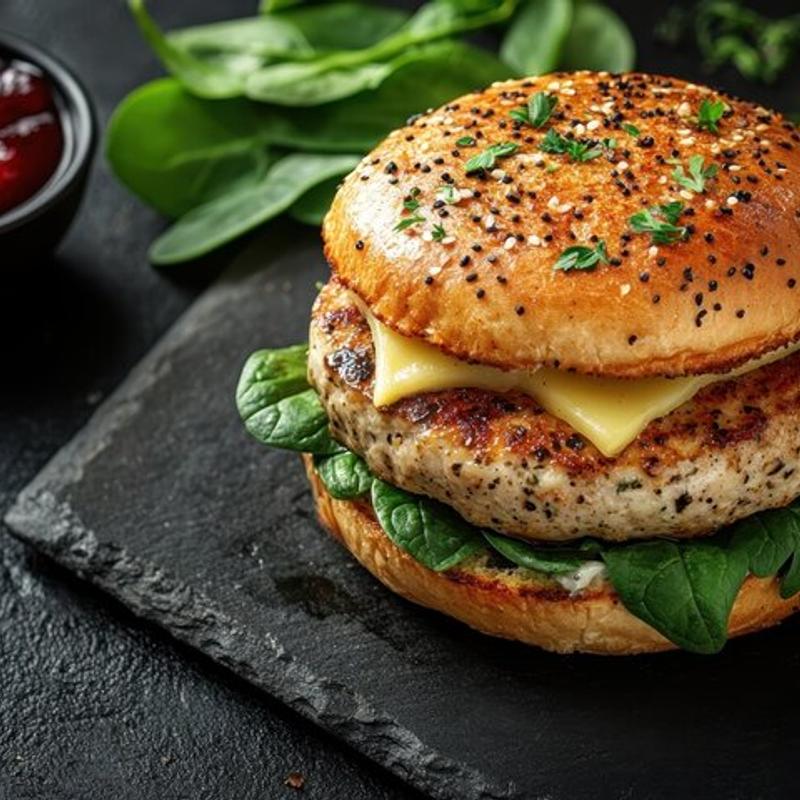 Seasoned turkey smash patty with melted cheese, lettuce, tomato, and herb mayo. Light but loaded with flavor.