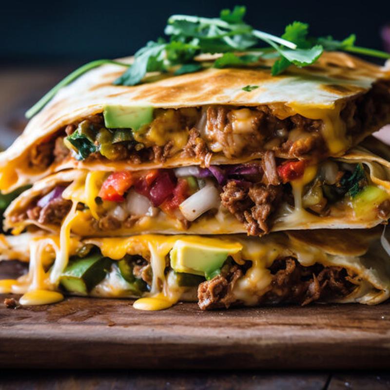 Crispy grilled quesadilla stuffed with cheese and your choice of chicken, beef, or veggies. Served with salsa and sour cream.