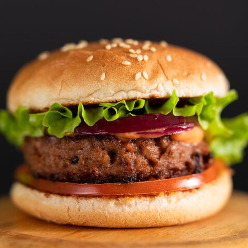 Plant-based Beyond patty smashed and seared with vegan cheese, lettuce, tomato, and City vegan sauce.
