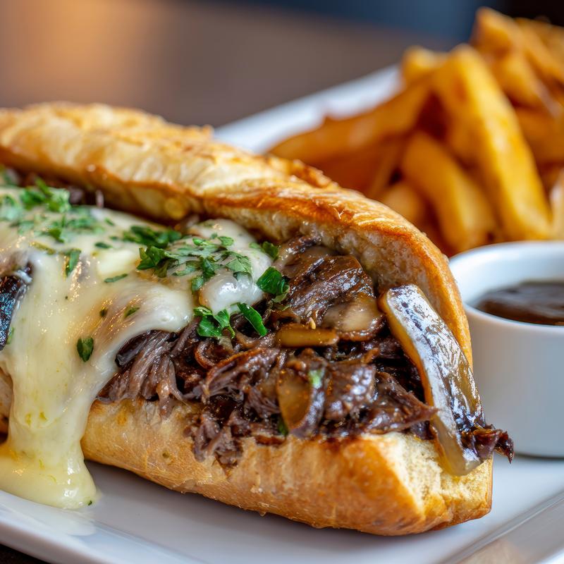 Shaved ribeye grilled with peppers and onions, covered in melted provolone on a soft hoagie. East Coast flavor, city swagger.